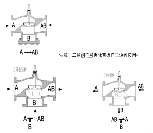 | 閥門 | 直通A→AB | 旁通B→AB |