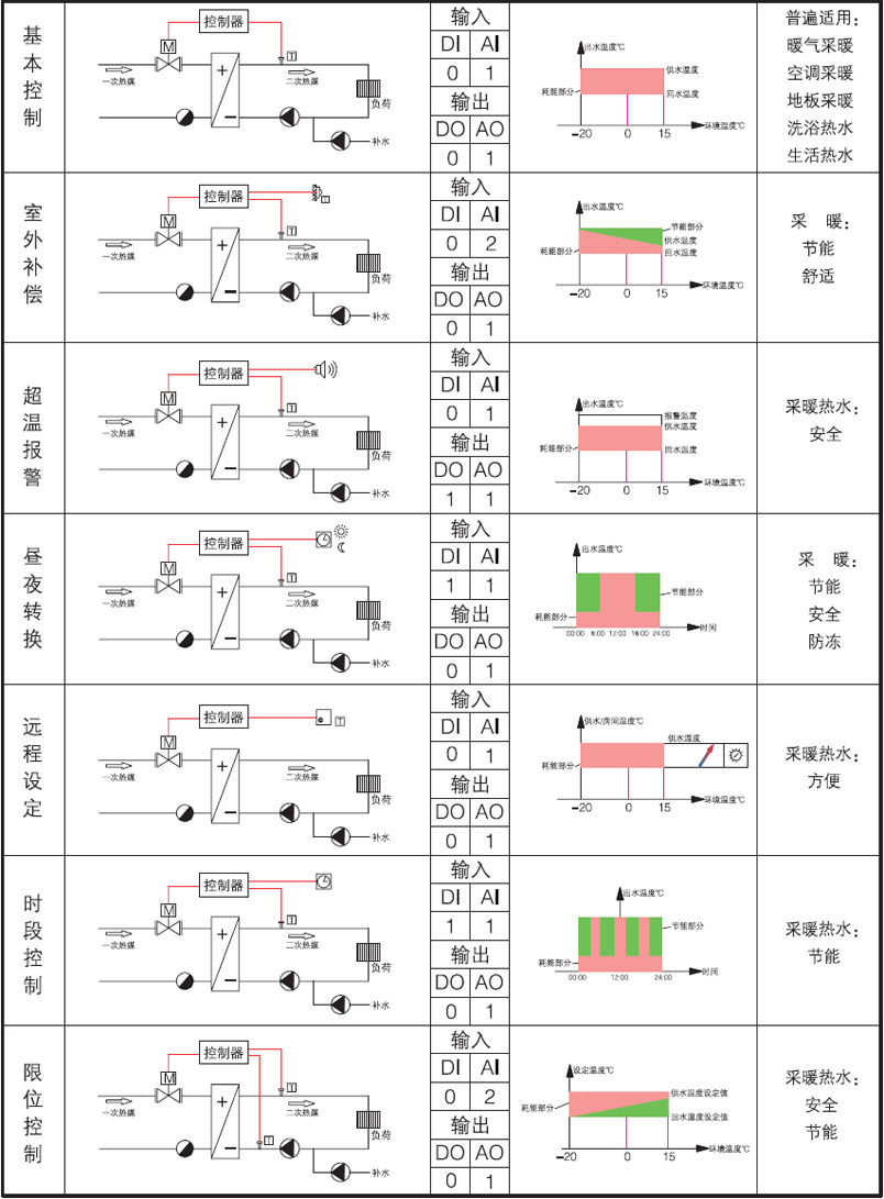 - 多種可選擴展功能,如溫度補償、遠程設置、優先級控制、設定值自動轉換、運行模式自動轉換、超溫報警等