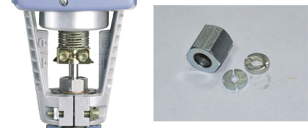 (2)閥桿頂部環槽與SQX..SKD..執行器中凹槽對正,且兩側螺栓平均用力緊固。